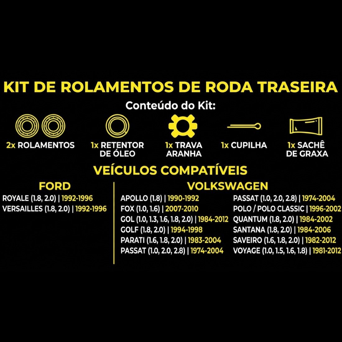 2 Kits de rolamento traseiro.