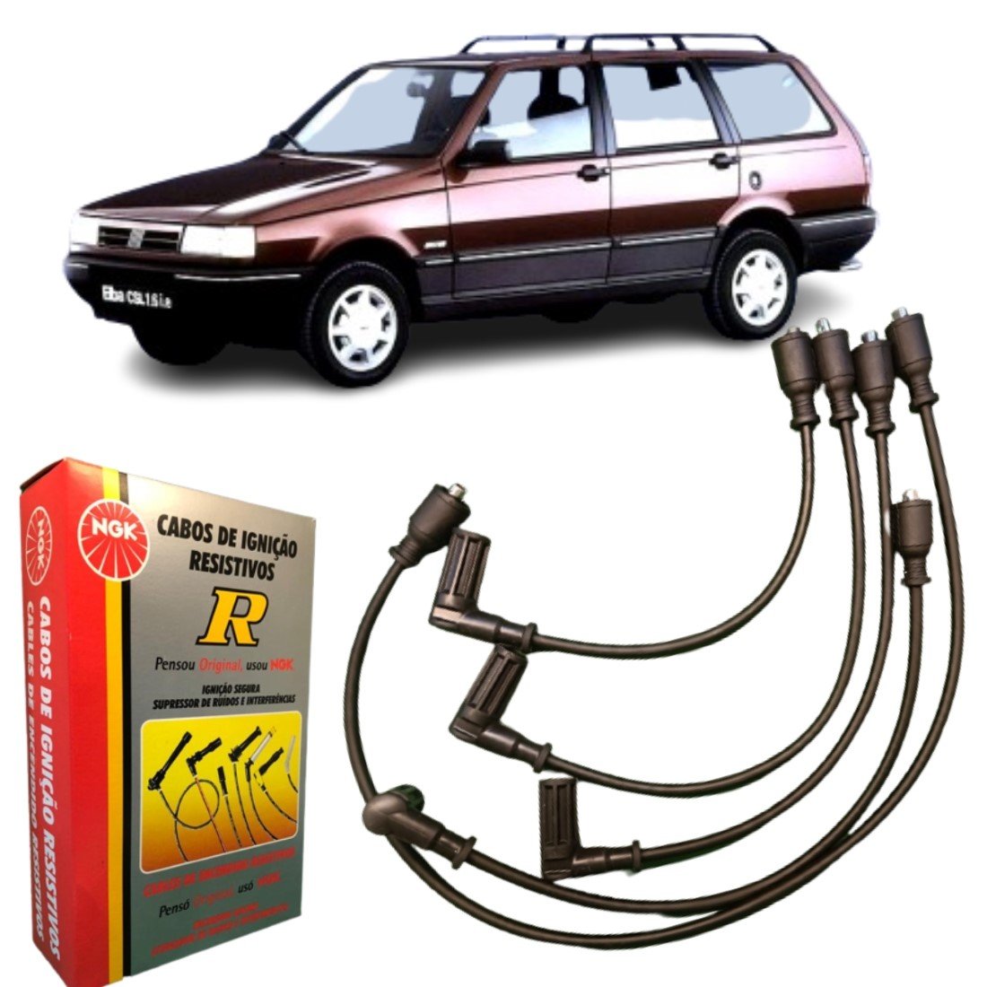 Jogo de cabo de vela NGK para Fiat Uno Elba Premio.