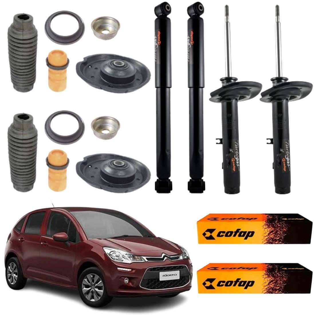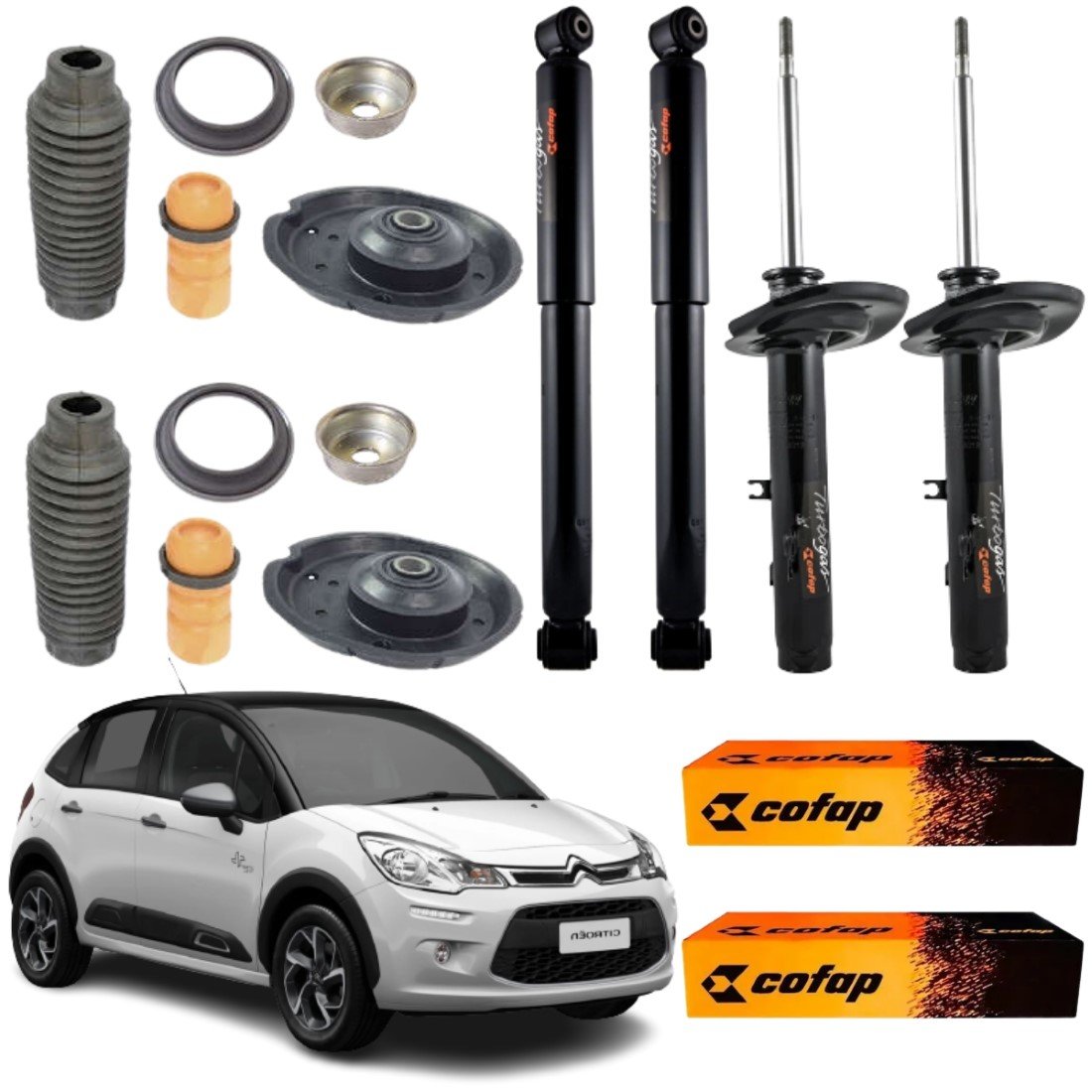 KIT AMORTECEDOR DIANTEIRO TRASEIRO COFAP C3 2013/... CAMBIO AUTOMATICO