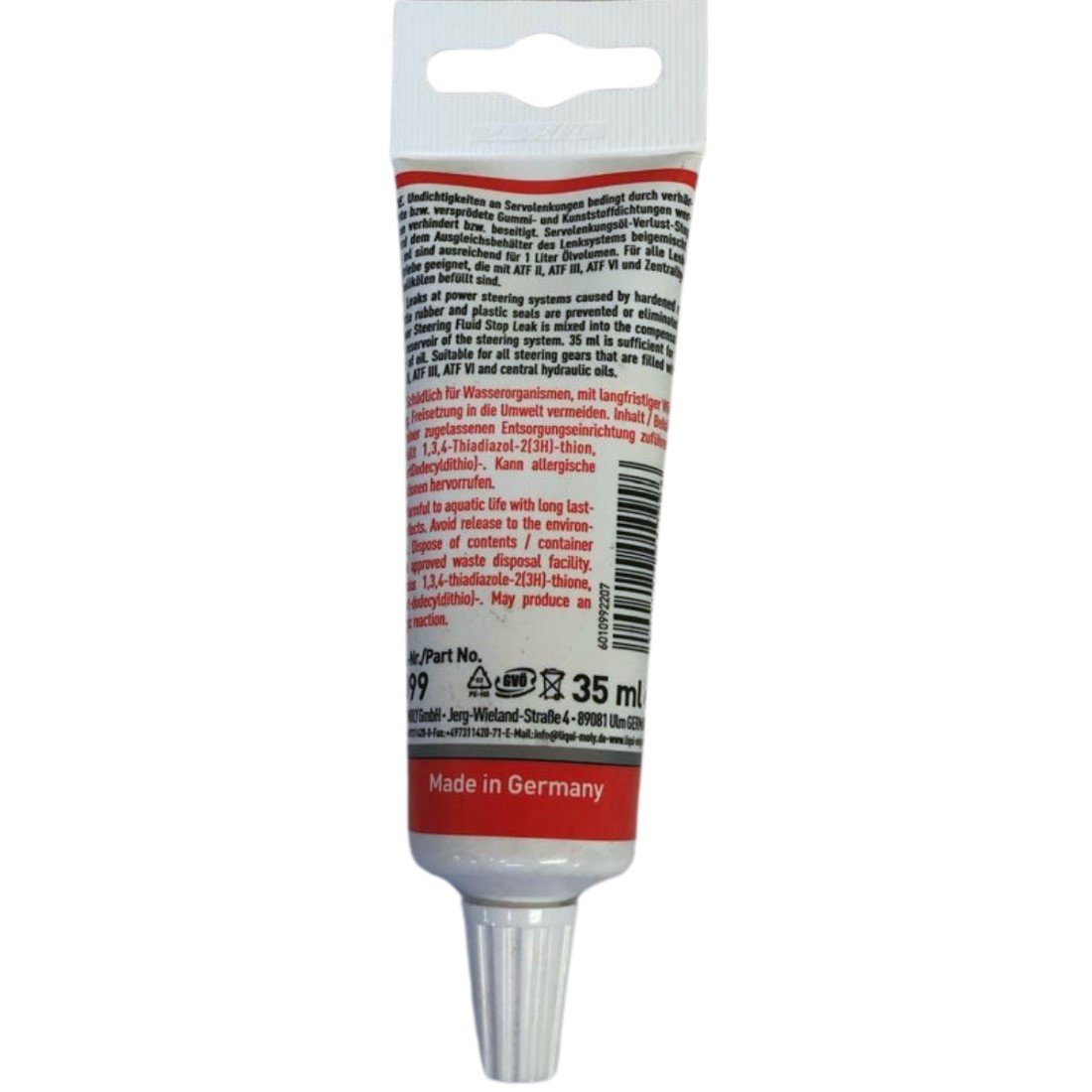 Aditivo especial, conserva da melhor forma as juntas de borracha e de plástico na caixa de direção. Evita ou elimina vazamentos nas engrenagens causadas por juntas endurecidas ou enfraquecidas. Da mesma forma, limpam-se os orifícios e canais das engrenagens e o rendimento do óleo é renovado. Reduz os ruídos das direções assistidas. É possível prolongar o tempo de vida útil das caixas de dire ção e reduzir os custos de reparação.