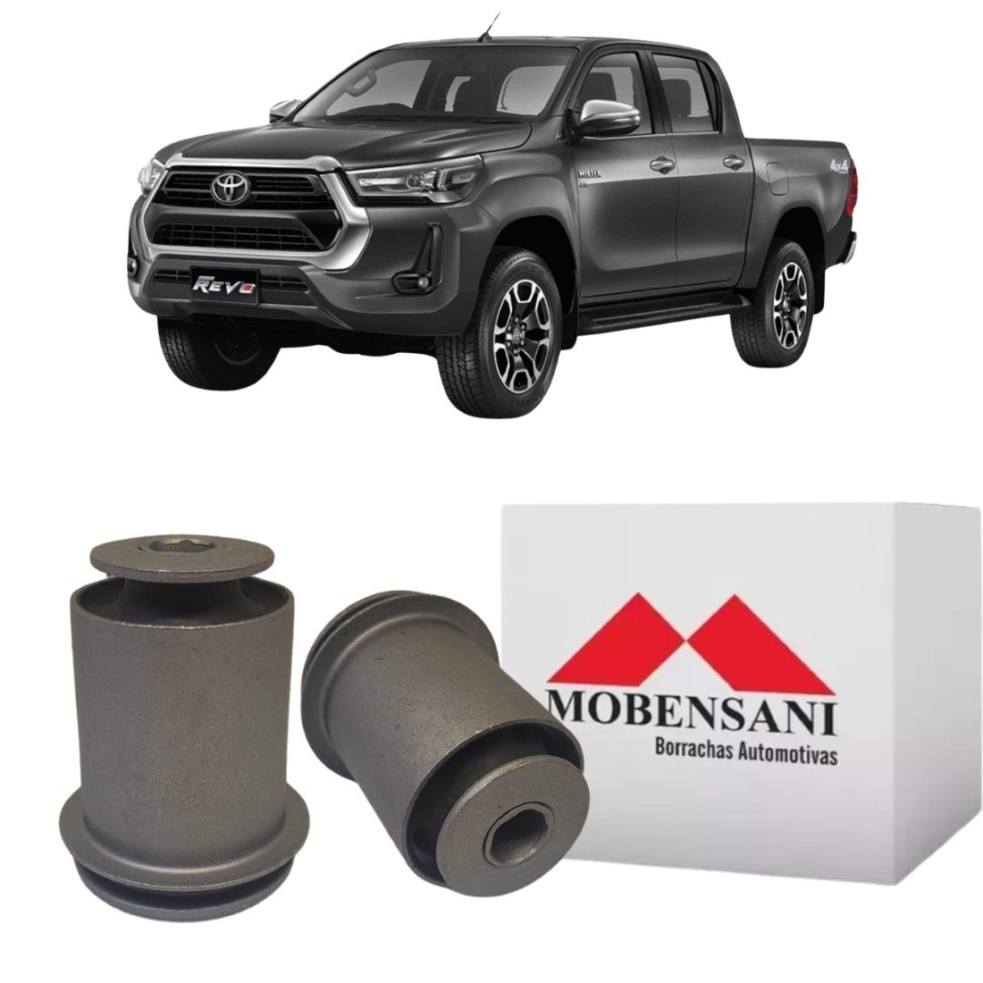 Par bucha de bandeja suspensão dianteira Mobensani para Toyota Hilux e SW4 2016 a 2021.