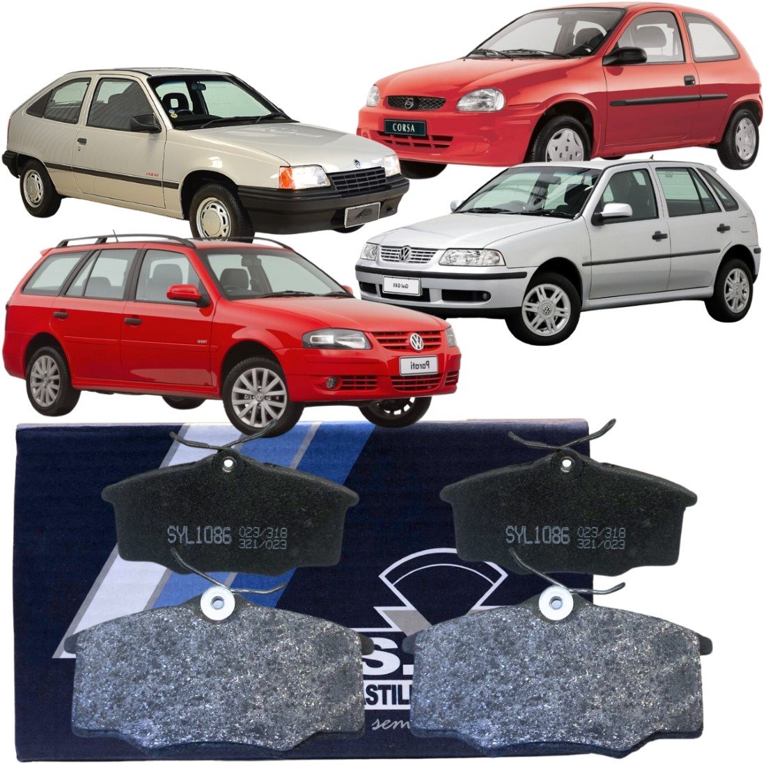 Pastilha de freio dianteiro S.Y.L Chevrolet Corsa, Kadett, Ipanema. Volkswagen Gol, Parati e Saveiro.