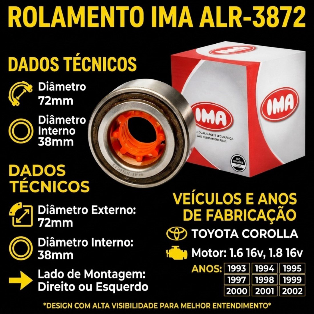Rolamento Roda Dianteira Ima Para Toyota Corolla 1993 A 2002